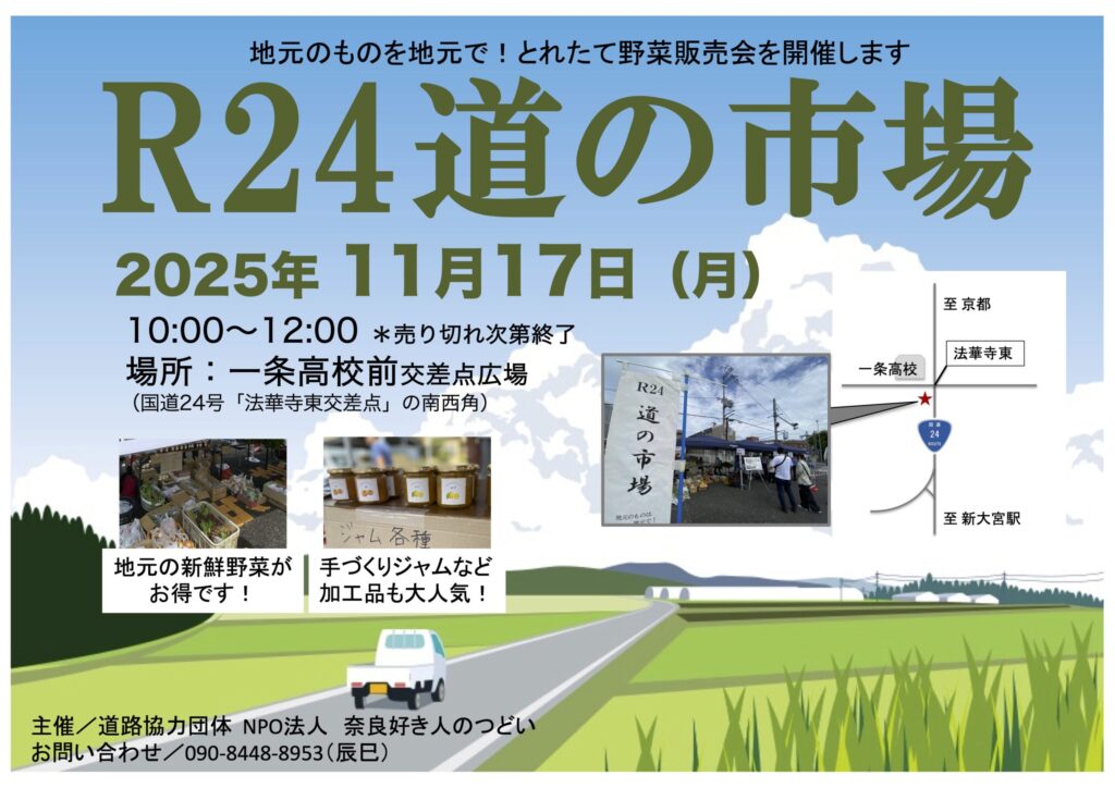 年2回、国道24号沿いで、地元の野菜や加工品を販売する市場を開催しています。
